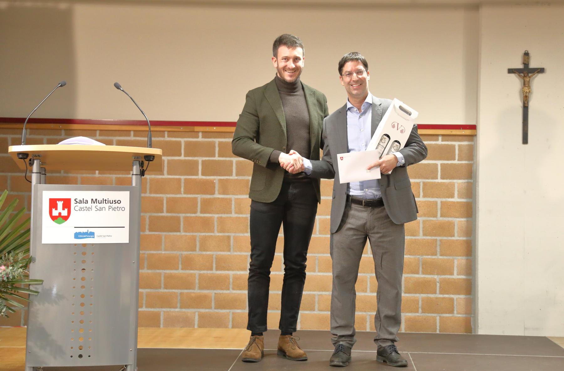 - Rosanna e Giorgio Cereghetti per aver vinto la medaglia d’argento al Concorso svizzero dei prodotti regionali tenutosi nel settembre 2025 a Courtemelon nel Canton Giura, con la loro gazosa artigianale “Grimèll”.